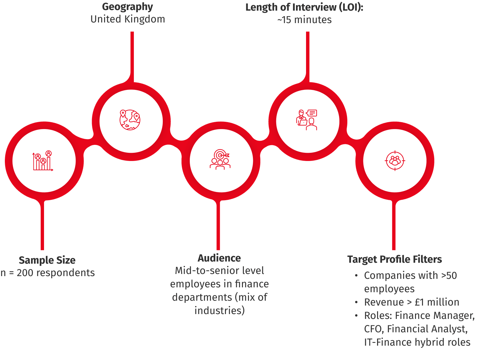 A leading fintech platform was exploring the role and reception of financial APIs (providers, integrators, and aggregators) among finance professionals in mid-to-large UK businesses. The objective was to map their awareness, decision journey, and user satisfaction with these platforms- along with broader needs around bulk payments, ERP systems, and AISPs.