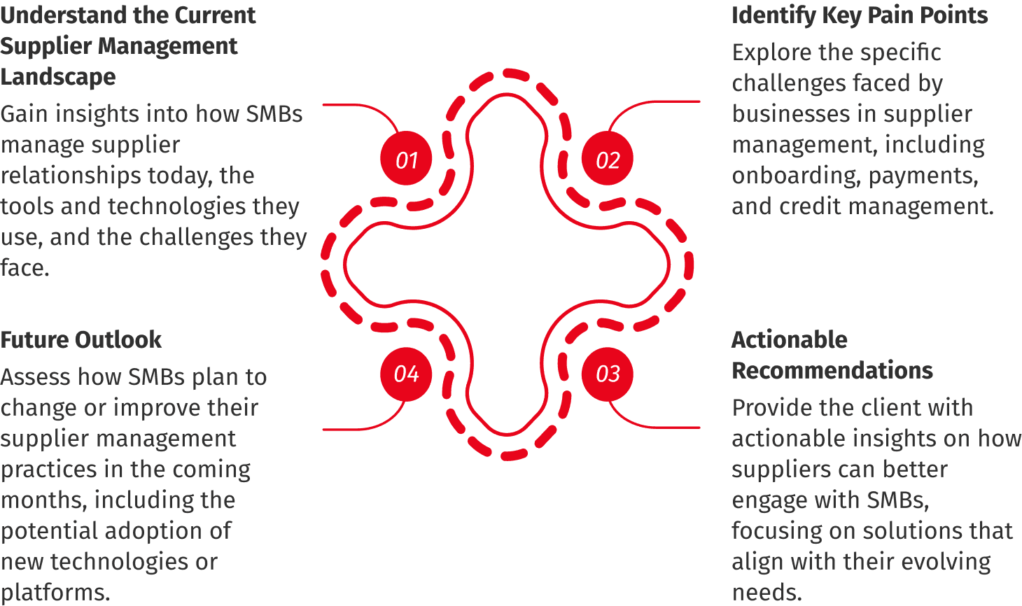 This research provides valuable insights for the client in developing a better approach to engage with SMBs, offering solutions that address their pain points in supplier management while enhancing the overall supplier experience.